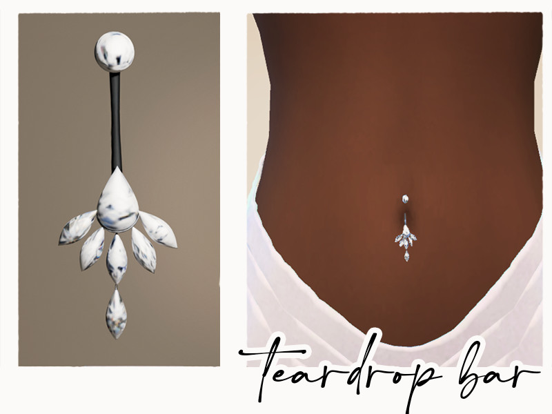 belly bar piercing that has two versions to work with most skins, ea base skin and cc skins, V2 is lower than version 1, (piercing height varies so please download both files and delete the one you don't need)