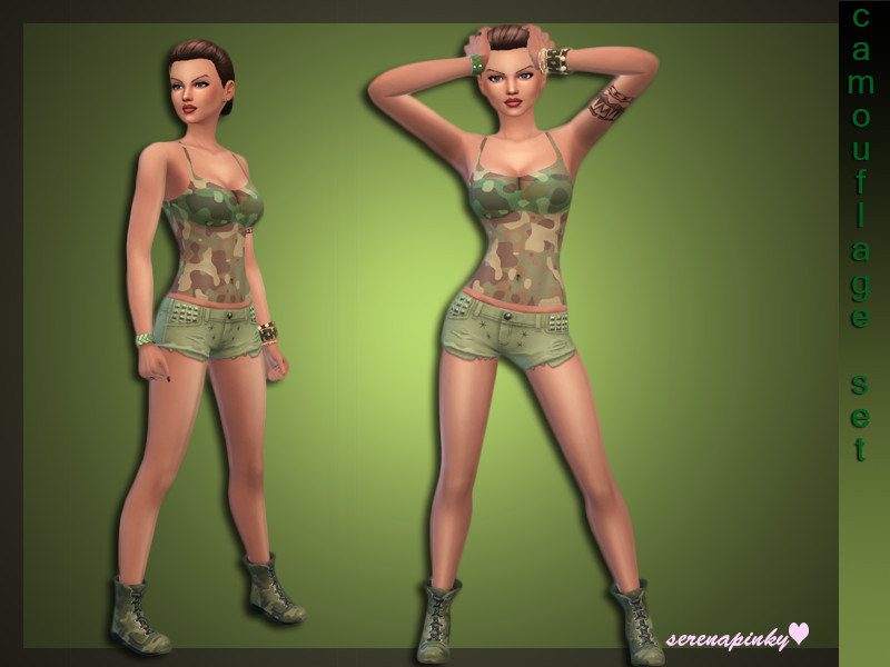 Nice camouflage set,top + shorts for your spare-time,everyday and party time categories