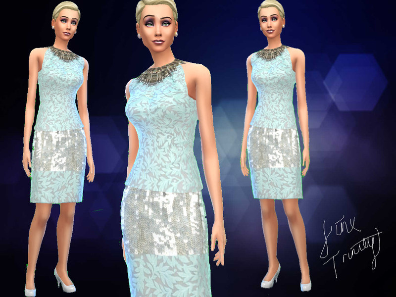 The top has a crystal-embellished neckline that continues down to rthe skirt that is part silver sequined