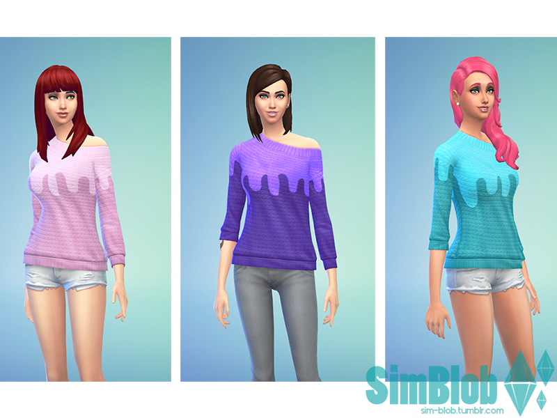 Three melting recolours of the off the shoulder sweater that comes with the game!