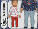Kids fashion clothing: five pajamas tops and pants for infant boys and girls with winter and berries prints.
