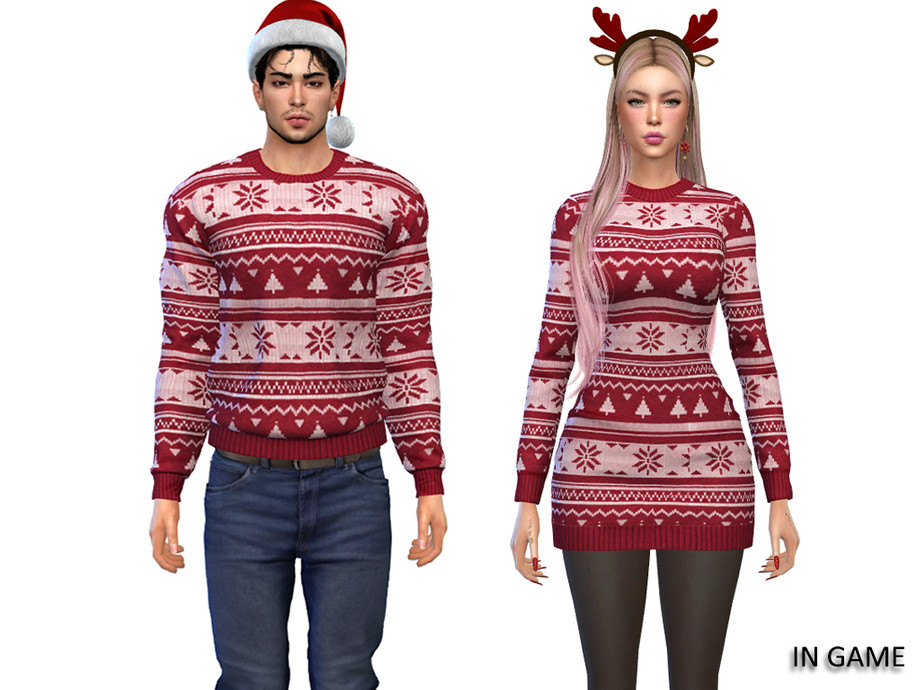 This delightful duo features a cozy male sweater and a festive female dress, both designed to bring out the holiday spirit in style perfect for couples looking to make a statement at holiday parties or cozy family gatherings.