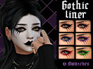 Gothic Makeup Set including an eyeliner with 6 separate swatches, 3 face swatches (one with lips covered, one without lips covered and one with just the cheek contour) and 1 lip swatch.