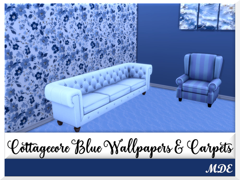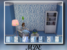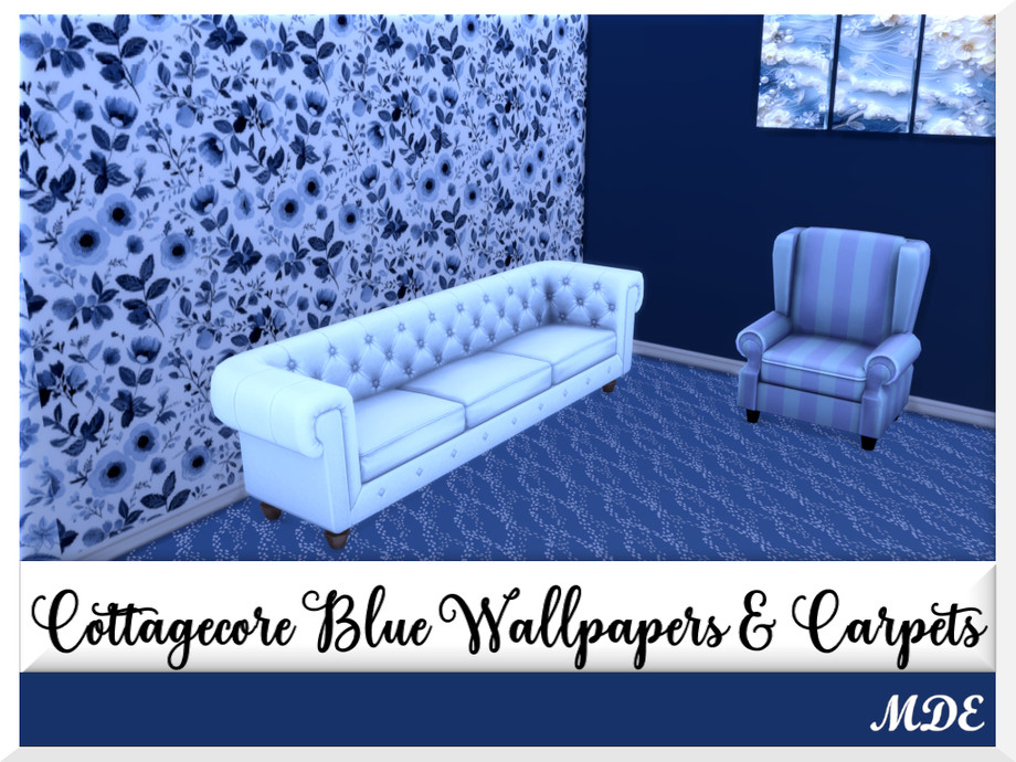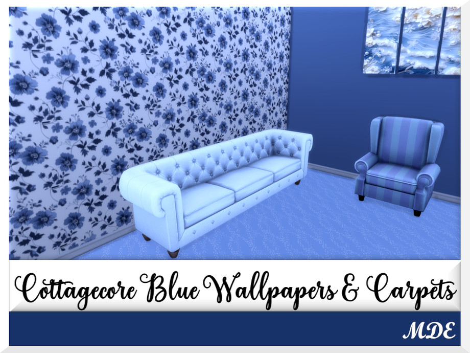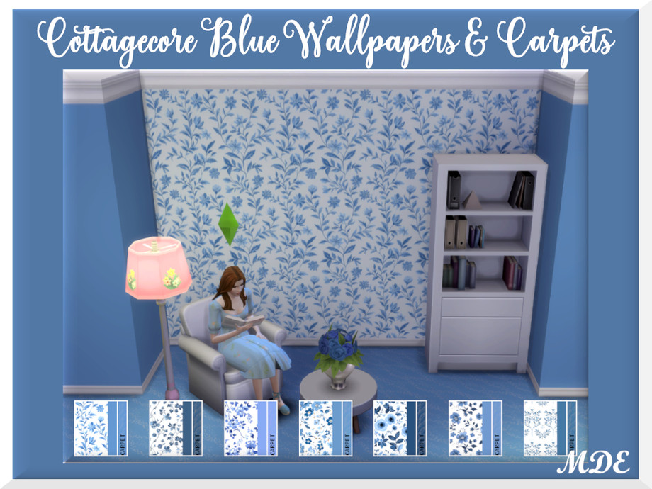 There are 7 wallpaper pattern swatches and there are plain walls matching with the patterns. Numbers on the icons show which plain paint goes with which wallpaper pattern. Same is valid for the Cottagecore Blue carpets.