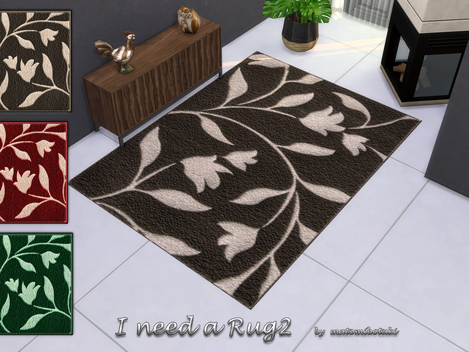 Timeless, chic rug with a floral pattern in 3 different colors, each item with custom thumbnail, created for Sims 4 by matomibotaki.