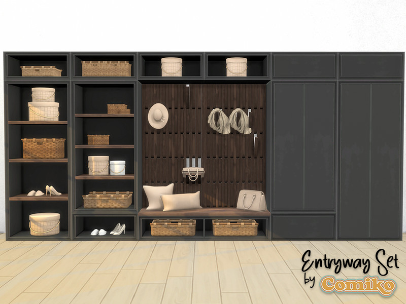 Sims 4 — Entryway Set Part 1 by Comiko — Part 1 - Entryway Set is base game compatible and consist of 7 items - Bag V1,