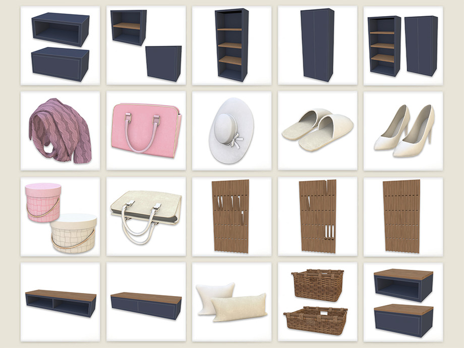 Part 1 - Entryway Set is base game compatible and consist of 7 items - Bag V1, V2, Painting, Pillows, Scalf, Basket V1, V2 Happy Simming! :)