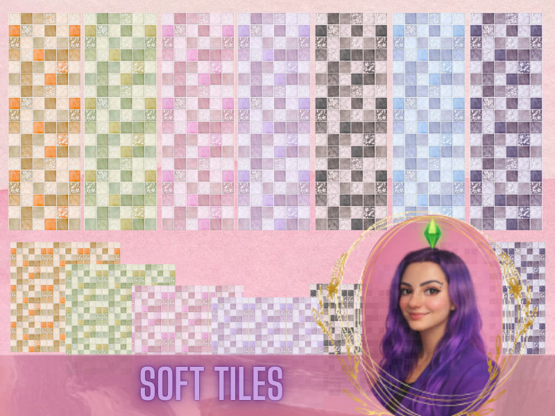 Soft Tiles Set features a matching tile wall and floor designed to create warm calm and cozy Sims interiors.