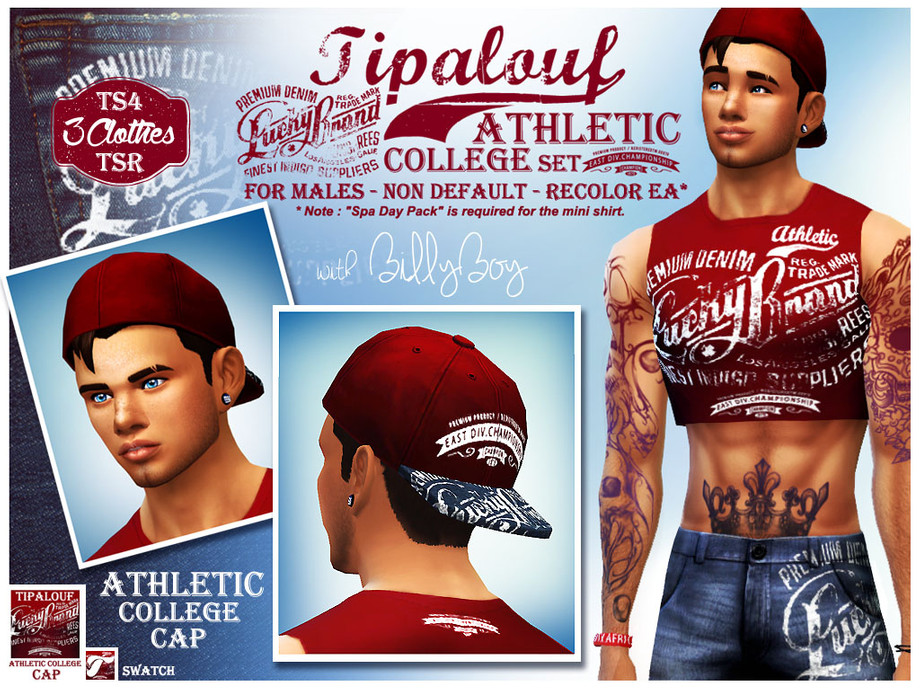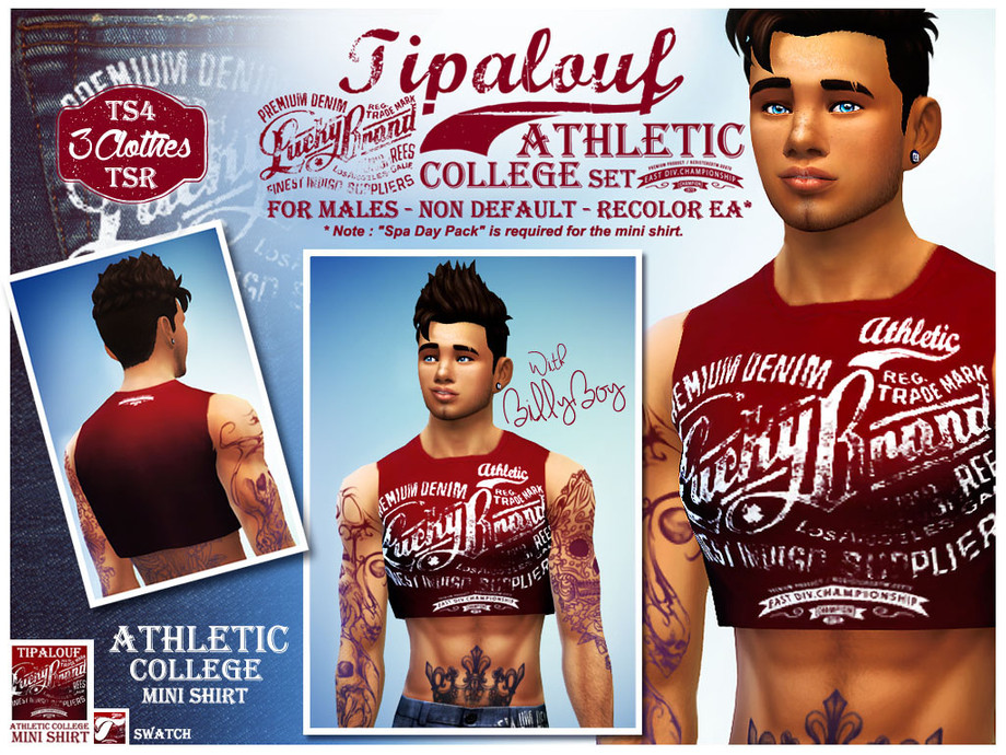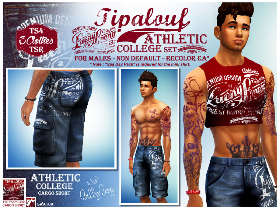 Sims 4 — Athletic College Set by Tipalouf2 — Athletic College Set by Tipalouf 3 Clothes : - 1 Mini Shirt - 1 Cargo Short