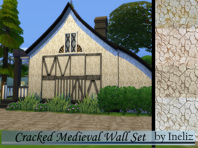 A set of cracked plaster walls with different wooden plank pattern. Comes in 4 colors and 6 pattern variations! Happy simming!