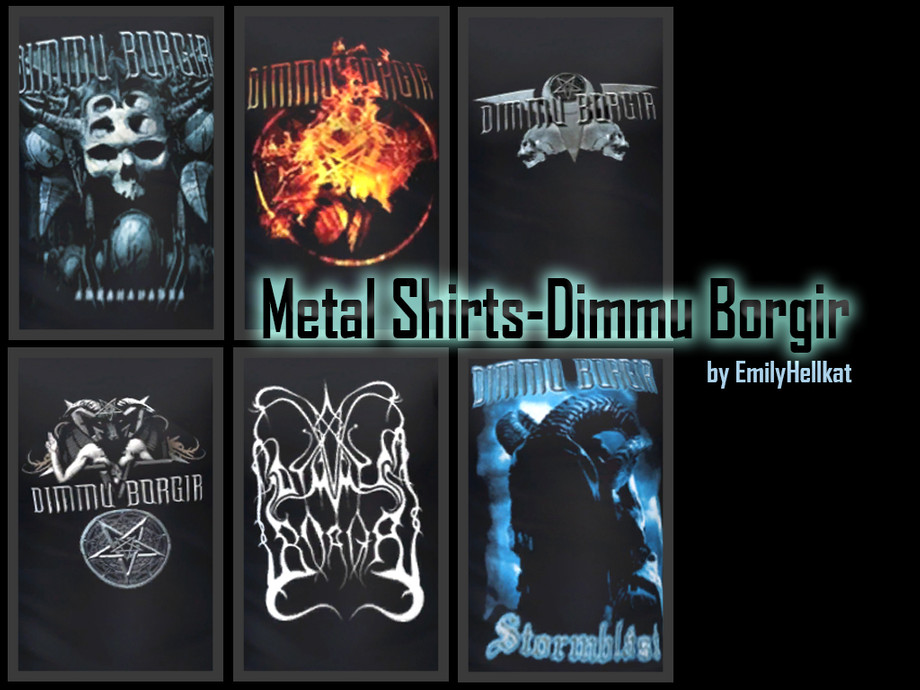 Metal T-Shirts for Male/Female ages Teen and up. 6 Real Tee Designs for Dimmu Borgir. Recolors base game items; nothing additional is required.