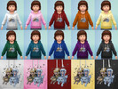 All of the clothing, hair, and accessories shown in the group photo above are from the Sims 4 base game or official Sims 4 packs (Vampires, City Living, Movie Hangout Stuff, etc.), with the following exceptions: