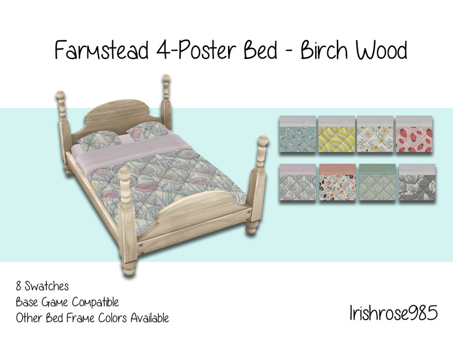Base game recolor, also edited to be more affordable. 6 wood swatches, 8 bedding swatches.