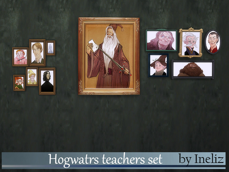 A set of painted portraits of Hogwarts teachers and a headmaster.