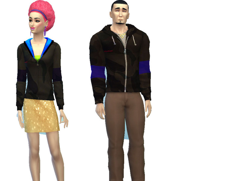 A Leather camo jacket for your female and male sims with the DI Fashion logo on it and blue shoulders