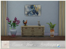 Sims 4 — Ocean View by QueenElizabethI — A compilation of a mural, landscape painting, and a rug. The image is an