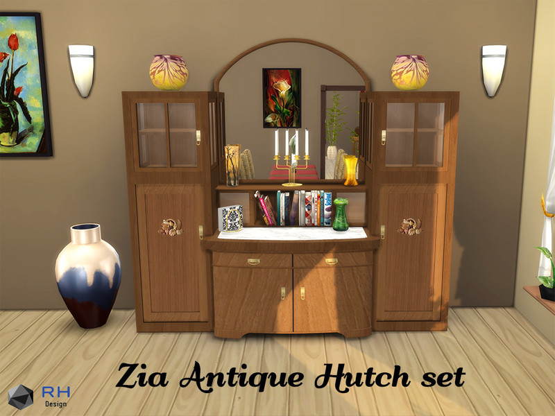 A beautiful 5-pieces hutch set with both contemporary and antique decor objects.
