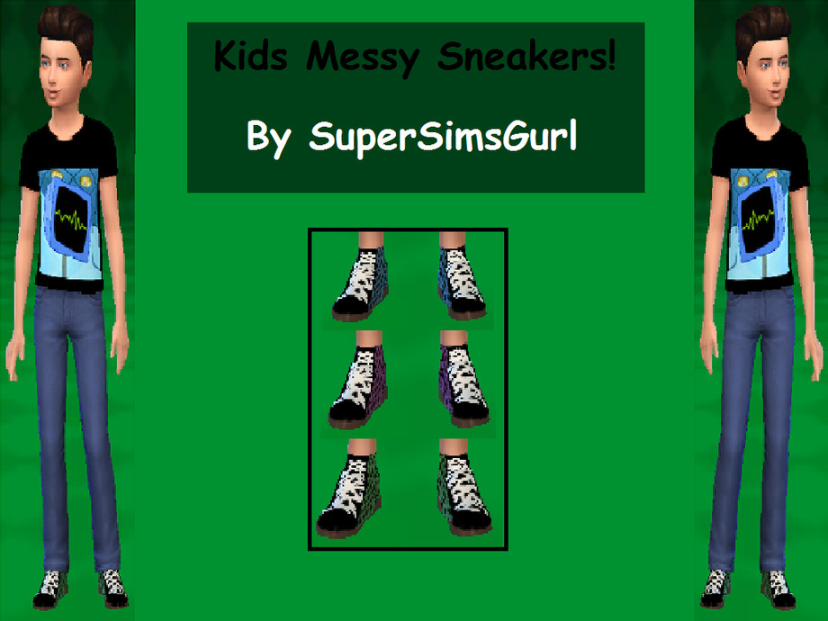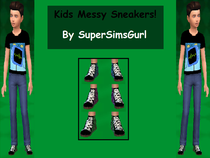 Messy sneakers for male children only. Comes in 3 colors, blue, green, and purple.