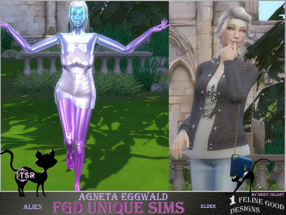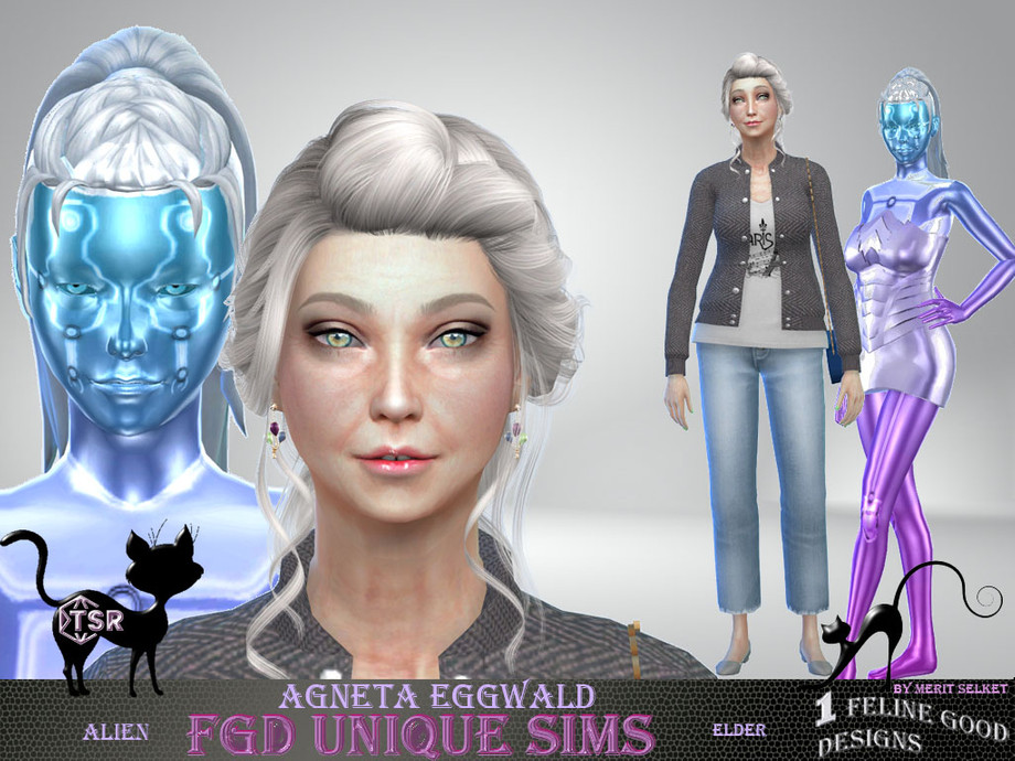 this atractive elder lady is a many hundreds of years old Alien who wants to learn everything about the Simsworld