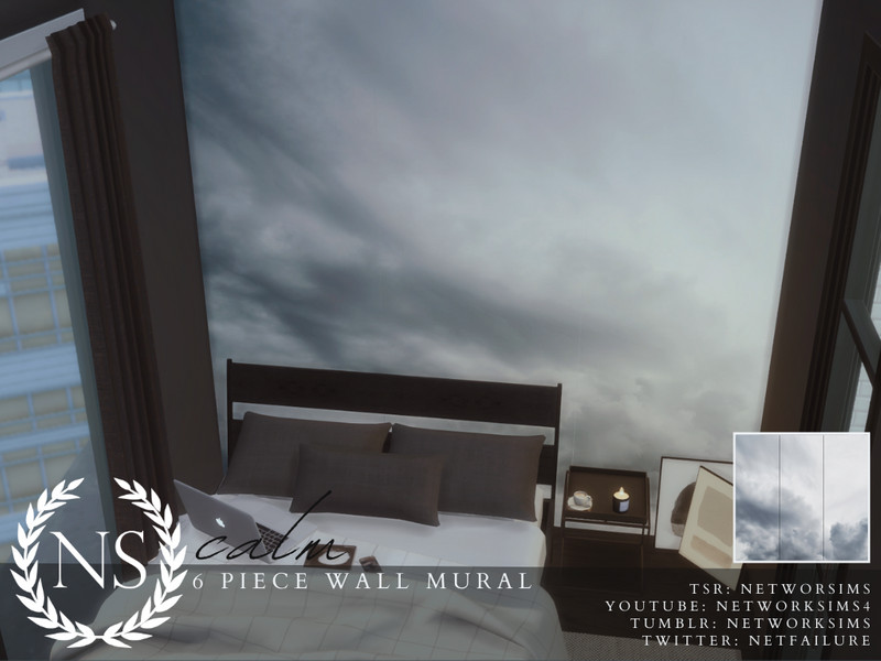 A wall mural of a grey sky.