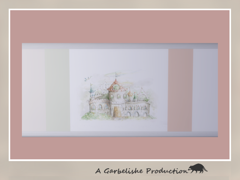 A wall Mural featuring a Castle. Additional 4 paint swatches.