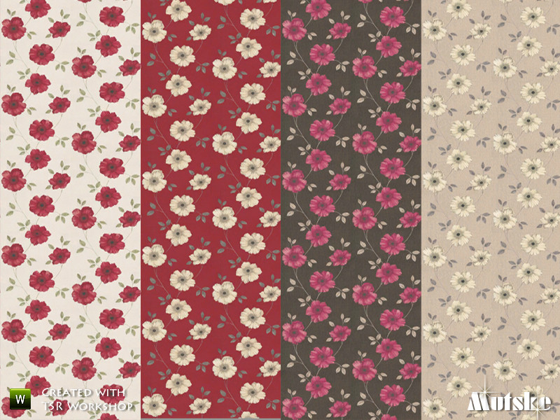 Floral Wallpaper with 4 variation to mix and match. Not for use with a sims inventory. Make sure that your game is fully patched and up to date for this set to show and work correctly in the game. Have fun playing!