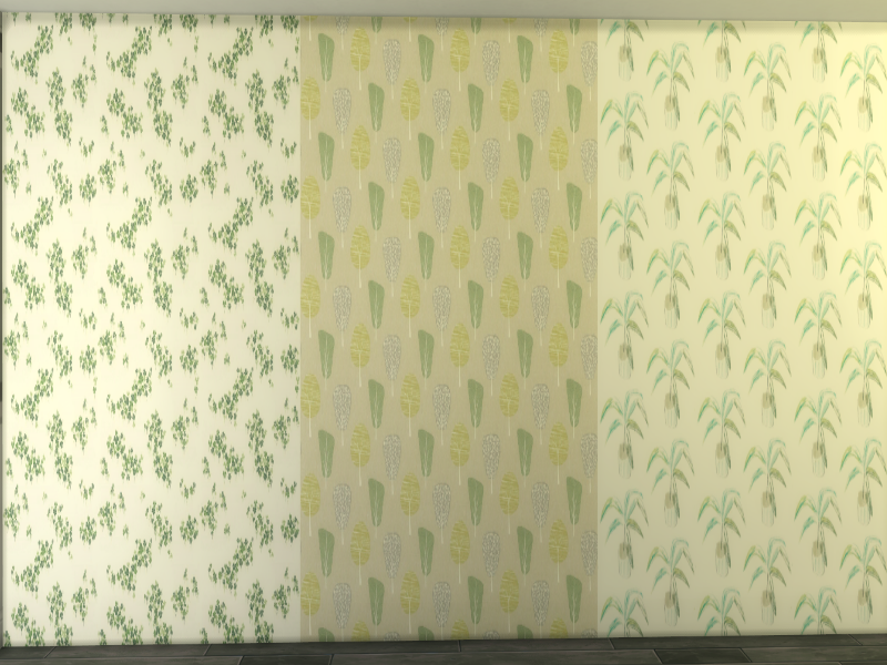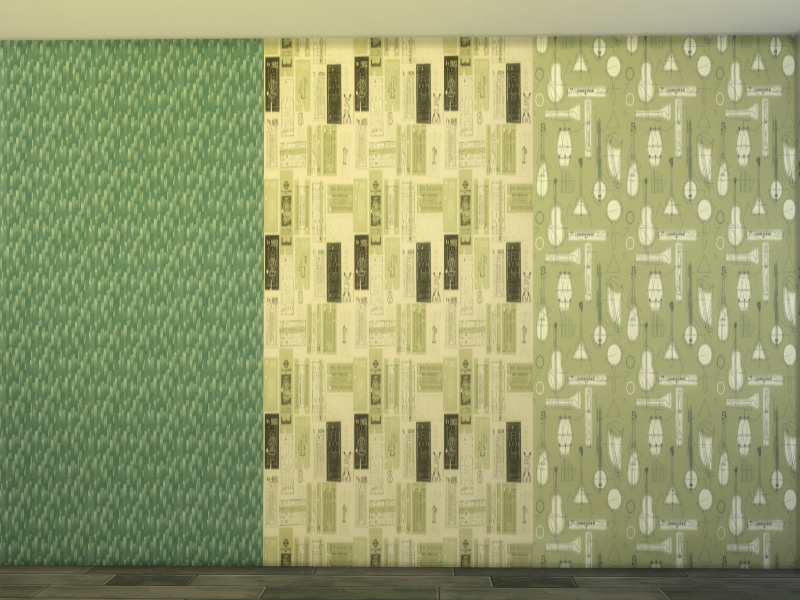 Some more Green wallpapers for you to enjoy, 6 swatches for 3 wall heights. Each cost 2 simoleons each.