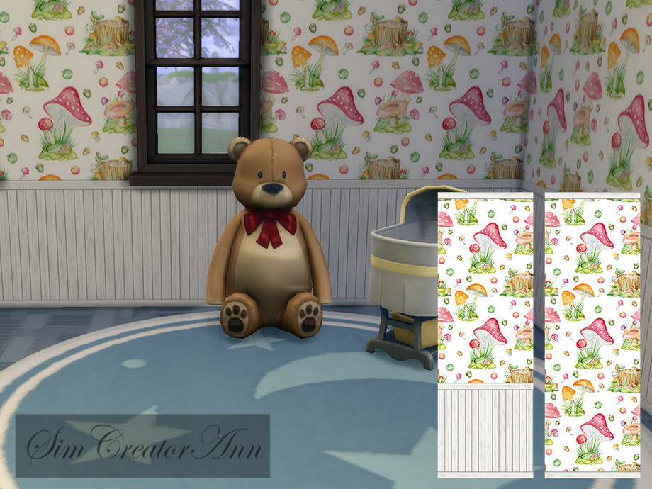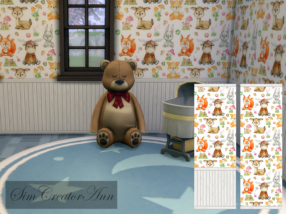 In the woods wallpaper comes in 3 wall heights, have 4 swatches and it's base game. Price: 6 SD