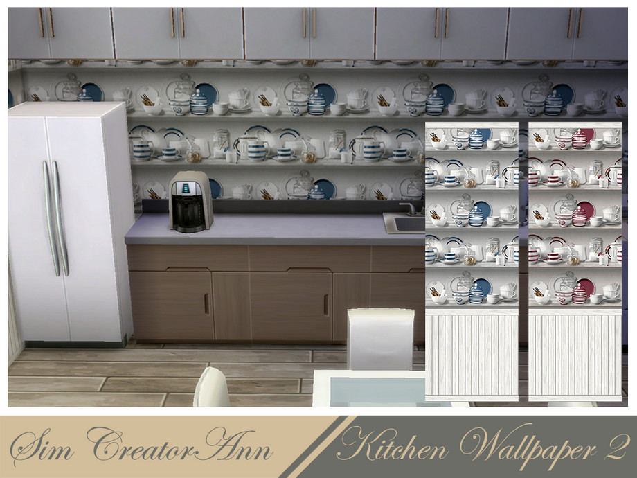 A modern Kitchen wallpaper, comes in 3 wall heights and 2 swatches (blue and red). It's base game and the price is: 6 SD