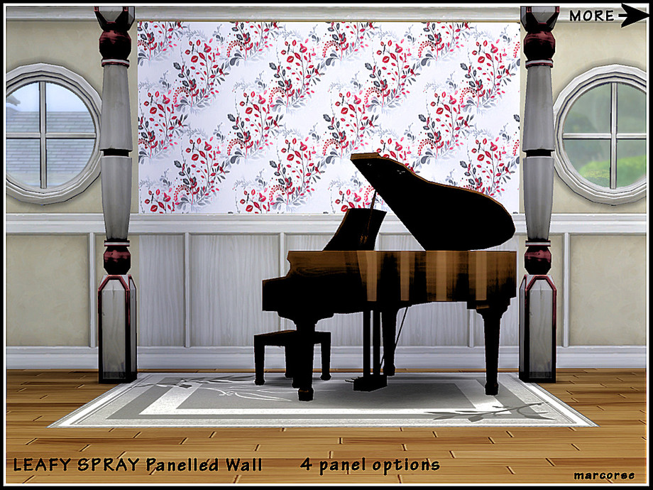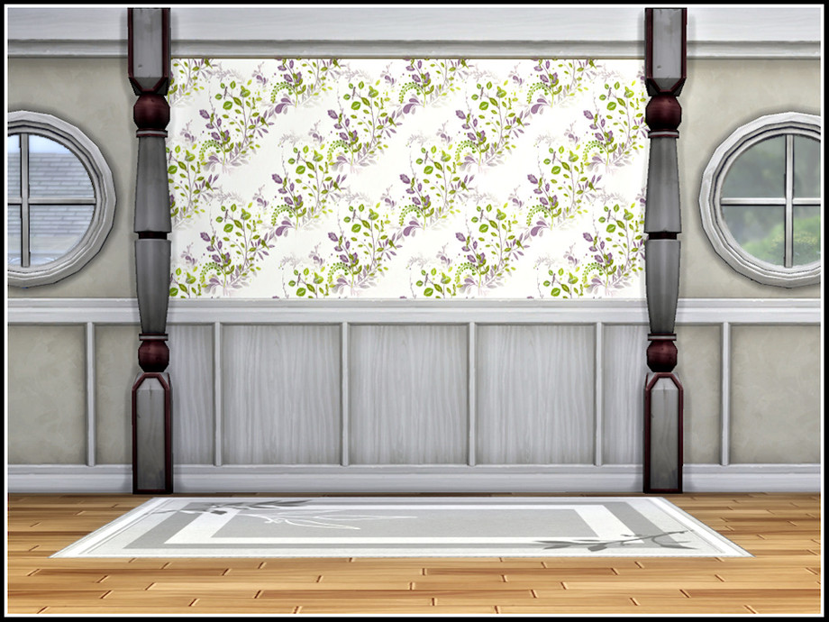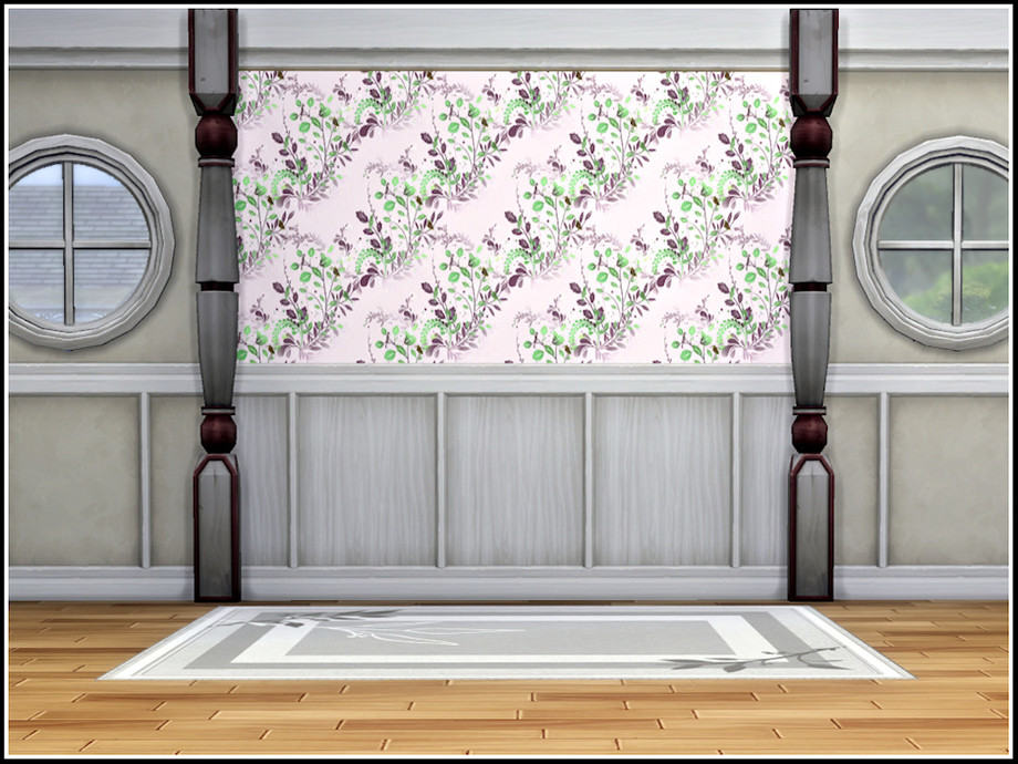 Softly coloured leafy sprays and small birds decorate the top half of this pannelled wall. 4 options. Found in Panelling. Created in the base game.