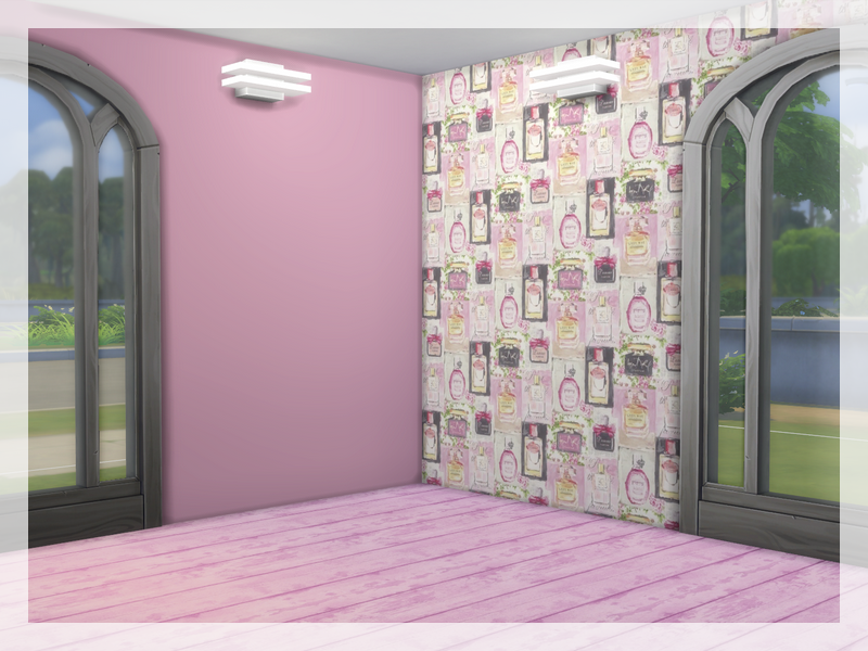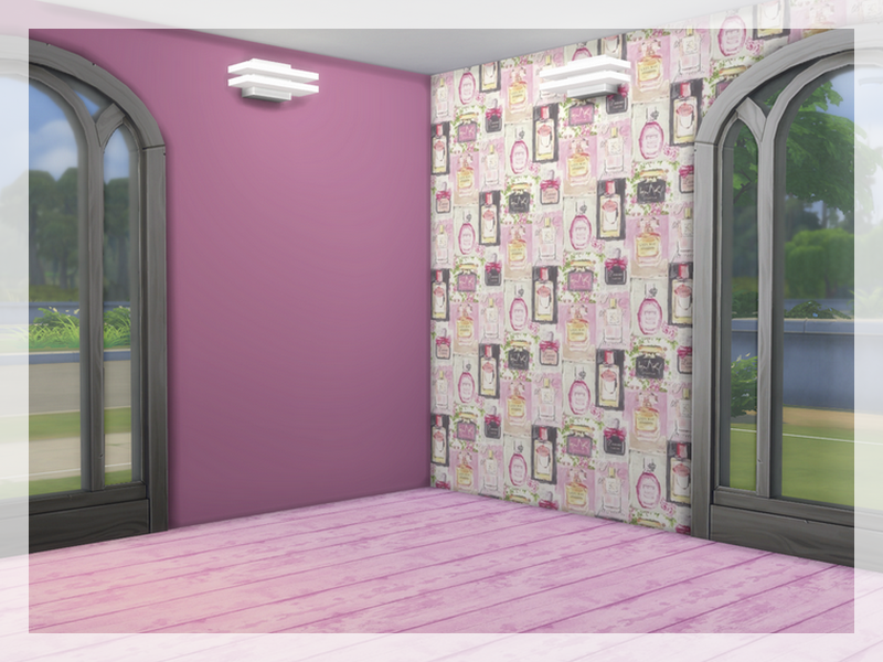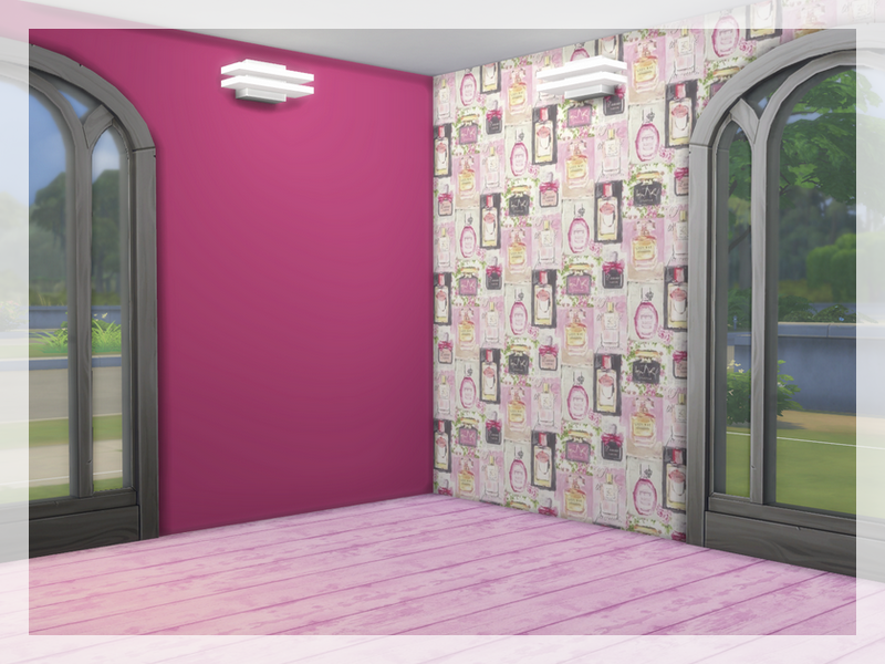 Wallpaper in vials with perfumes in sweet candy colors + three wallpapers in shades of pink.