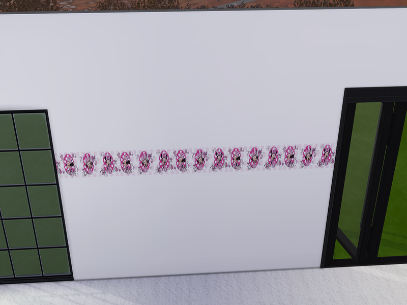 white wallpaper with pink minnie mouse border in 3 sizes.
