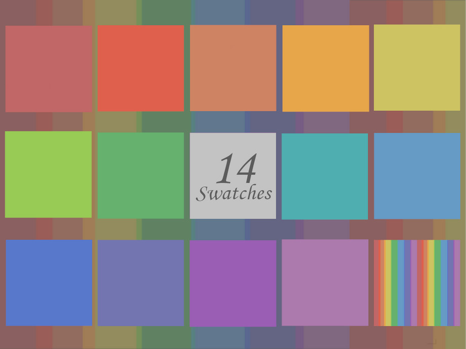 Colourful walls in all the colours of the rainbow and their blended combinations. 14 swatches.