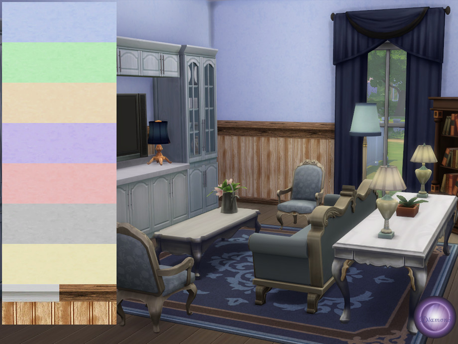 Solid colored walls on wood plank paneling. Comes with seven solid colors. The planks are the same light colored, one option is a white trim, the other is a medium brown colored trim. Fourteen color options for one file.