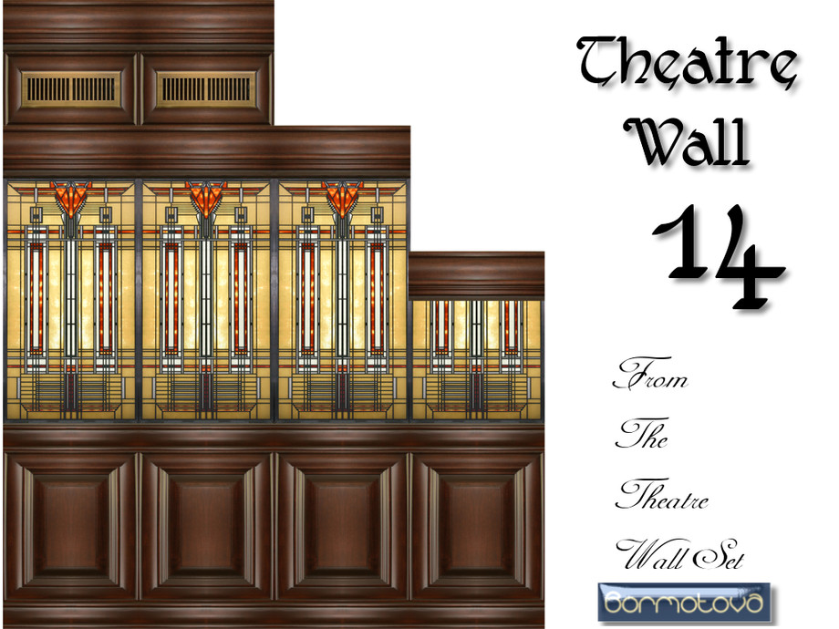 From a set of Theatre Walls, for Theatre or Cinema. Four Solid Wall Panels and 11 different coloured Theatre fabric walls (in the wallpaper section).