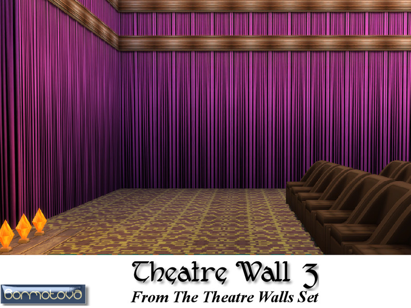 From a set of Theatre Walls, for Theatre or Cinema. Four Solid Wall Panels and 11 different coloured Theatre fabric walls (in the wallpaper section).