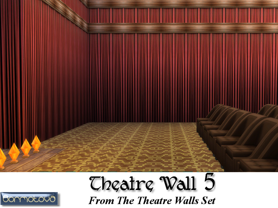 From a set of Theatre Walls, for Theatre or Cinema. Four Solid Wall Panels and 11 different coloured Theatre fabric walls (in the wallpaper section).