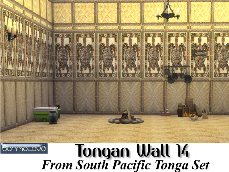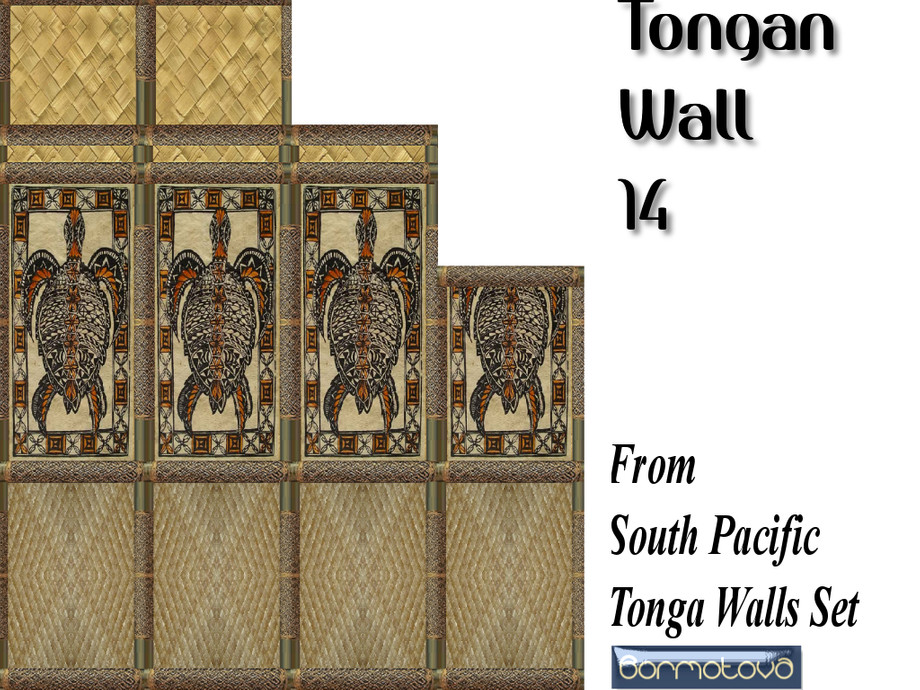 This set contains 15 Tongan walls, of woven flax and Tapa cloth (bark type fabric with tribal paintings), held up with carved cane which is commonly used in the South Pacific Islands. To compliment this set I have also created South Pacific Tongan floors, which again are a combination of woven matting or natural fiber and Tapa cloth.