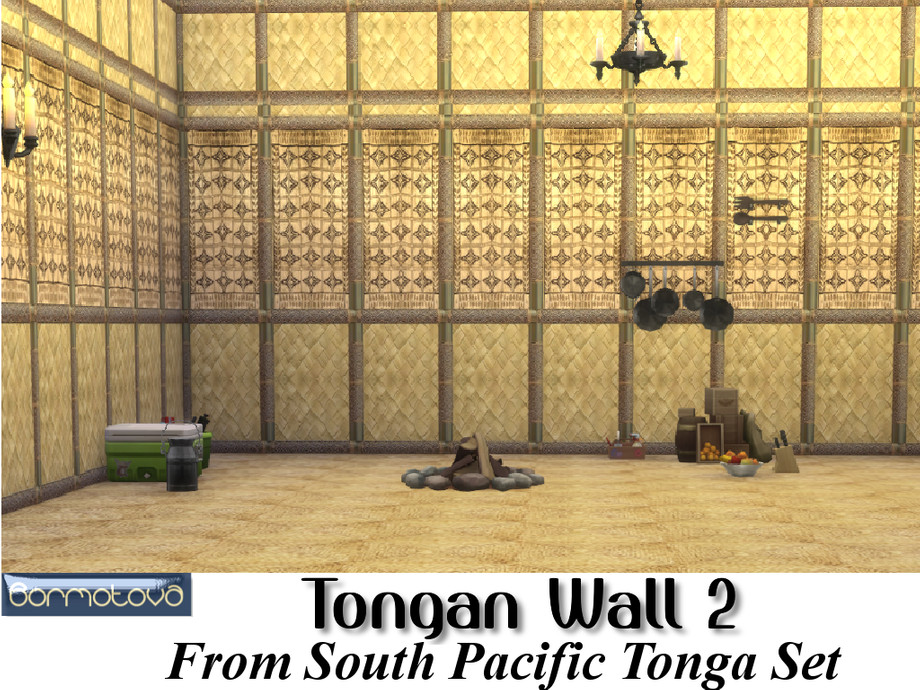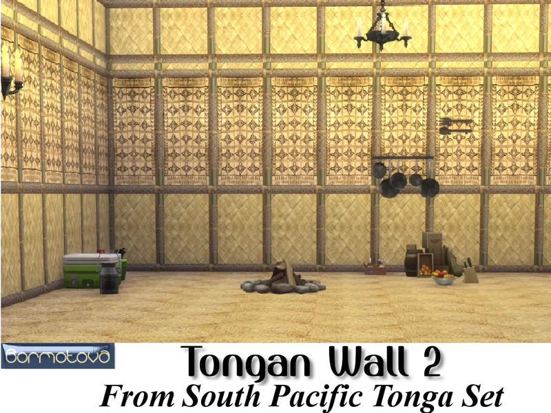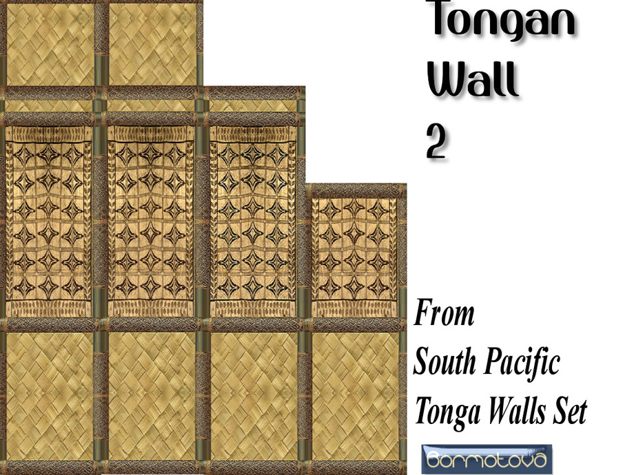 This set contains 15 walls, of woven flax and Tapa cloth (bark type fabric with tribal paintings), held up with carved cane which is commonly used in the South Pacific Islands. To compliment this set I have also created South Pacific Tongan floors, which again are a combination of woven matting or natural fiber and Tapa cloth