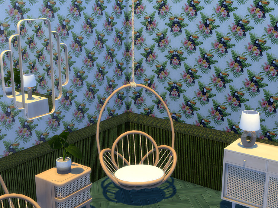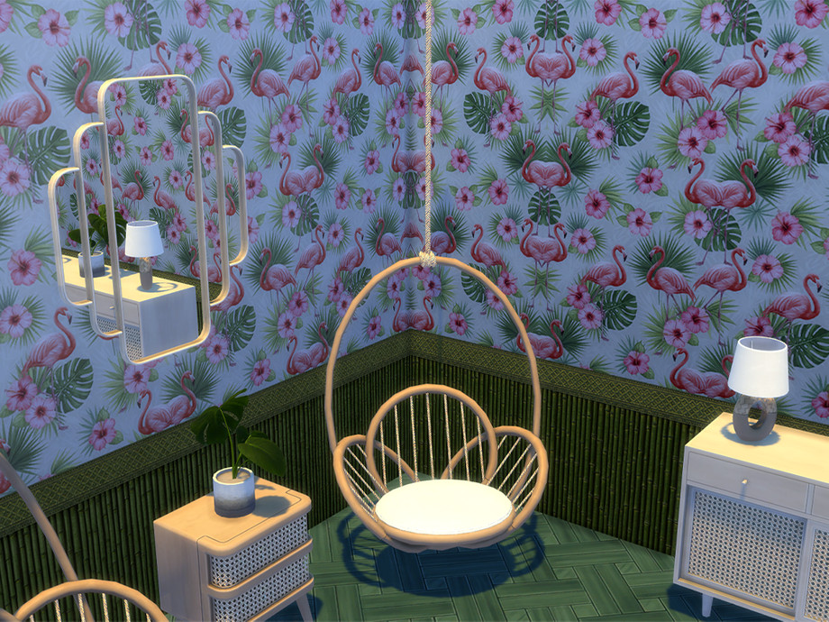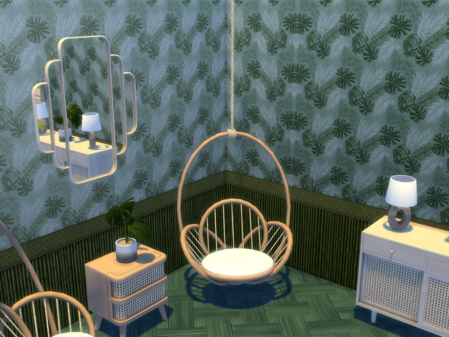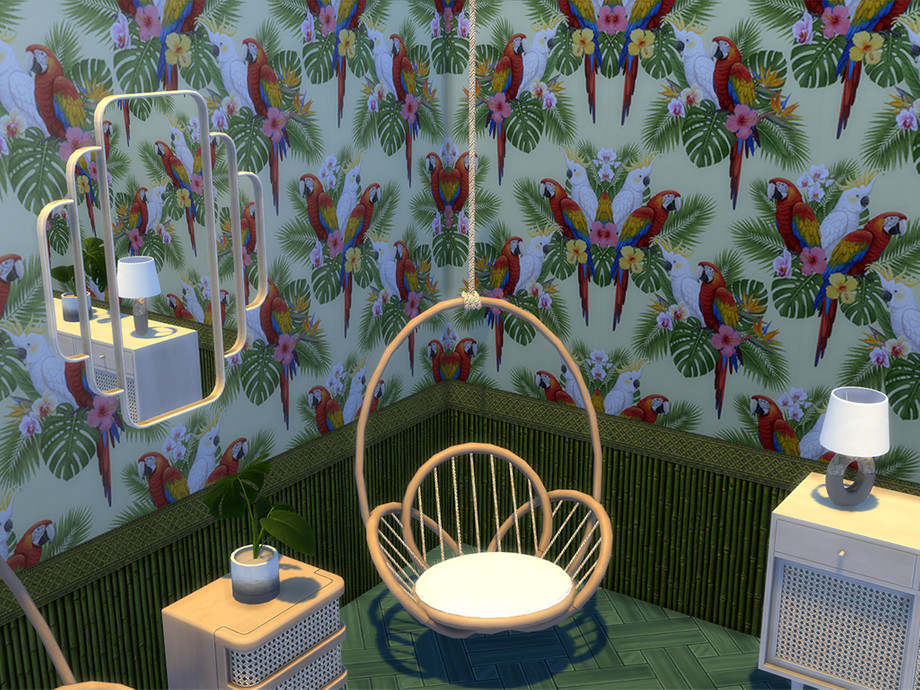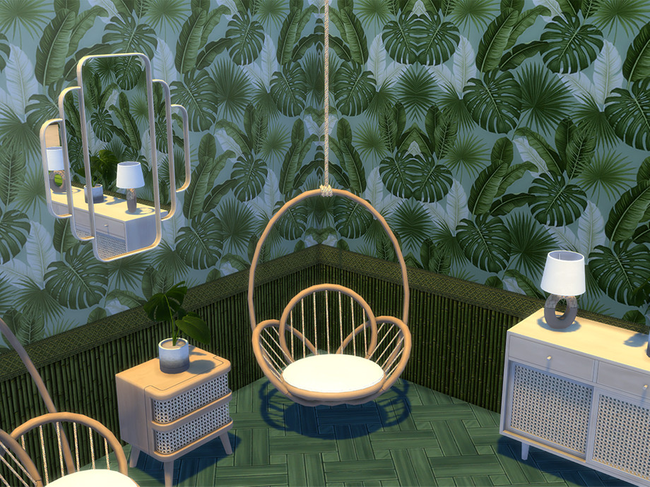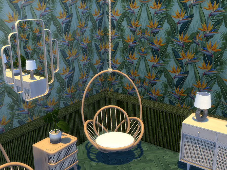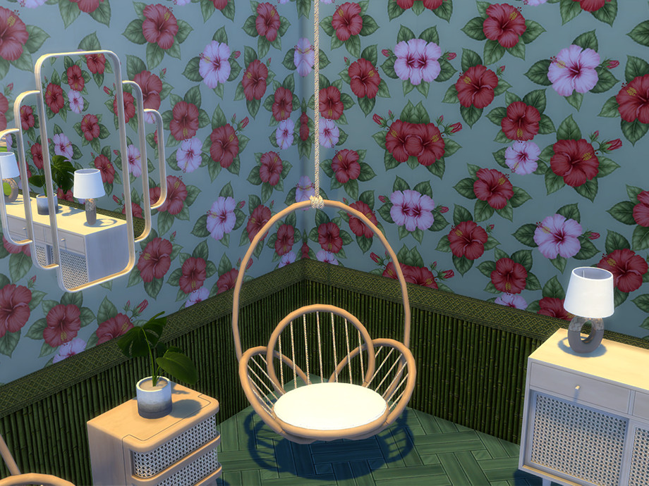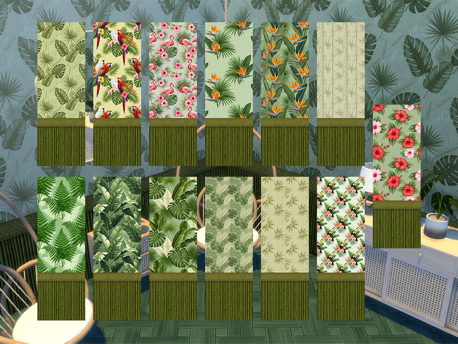 Immerse yourself in serenity with the Tranquil Tropics wallpaper collection! These unique wallpapers will transform any space into an oasis of calm, filled with lush greenery and exotic accents. Add a touch of natural harmony and lively colours to your Sims' interiors with the Tranquil Tropics collection.