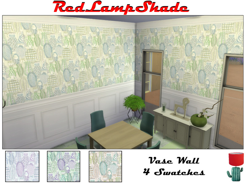 A fun patterned wall featuring vases, in 4 swatches. Available for 3 wall heights.