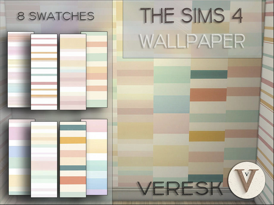 Wallpaper with stripes of different colors in 8 variations for your Sims 4 game.