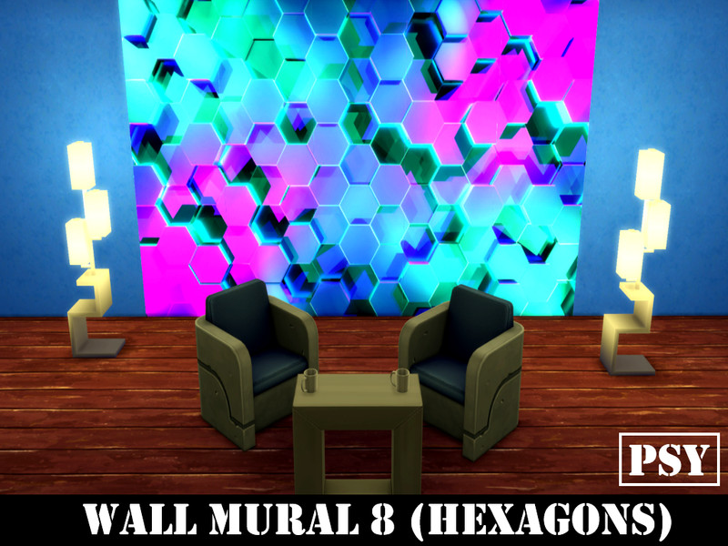 A 5-panel mural in neon, blue-purple abstract hexagons. Place each numbered panel separately, wherever you want.