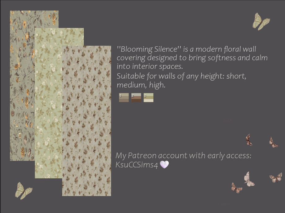 Sims 4 — Wallpaper Set-''Blooming Silence''. by KsuCCSims4 — Blooming Silence is a modern floral wall covering designed