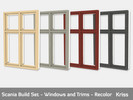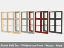 The first part consists of 7 different window styles and 3 different windowtrims that can be mixed and matched to fit any building style from country cottage to goth mansion. Windows can be used without the windowtrims as well. All items comes in 1-tile and 2-tile versions with 4 wood colours each.