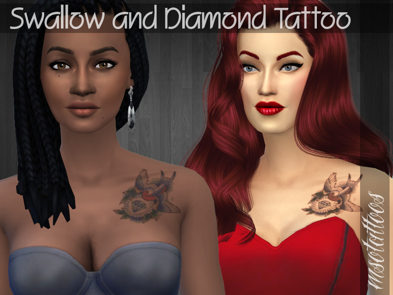 Swallow and Diamond Chest Tattoo