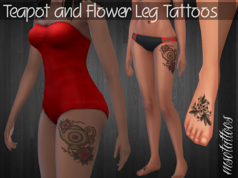 Teapot and Flower Leg Tattoo