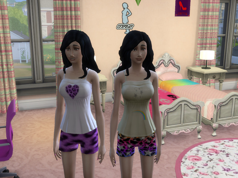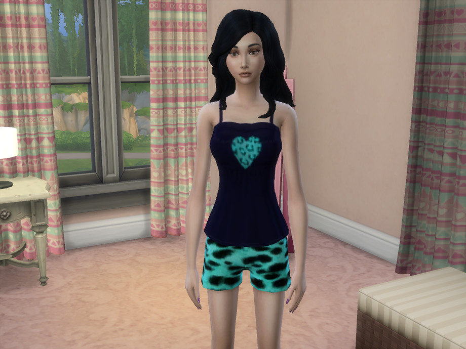 These can be found as swatches under the original game item so as not to clutter up your CAS with standalones. The pajamas shirts are found under the blue camisole and the pajama shorts are found under the blue and white striped shorts. They also come with custom thumbnails.