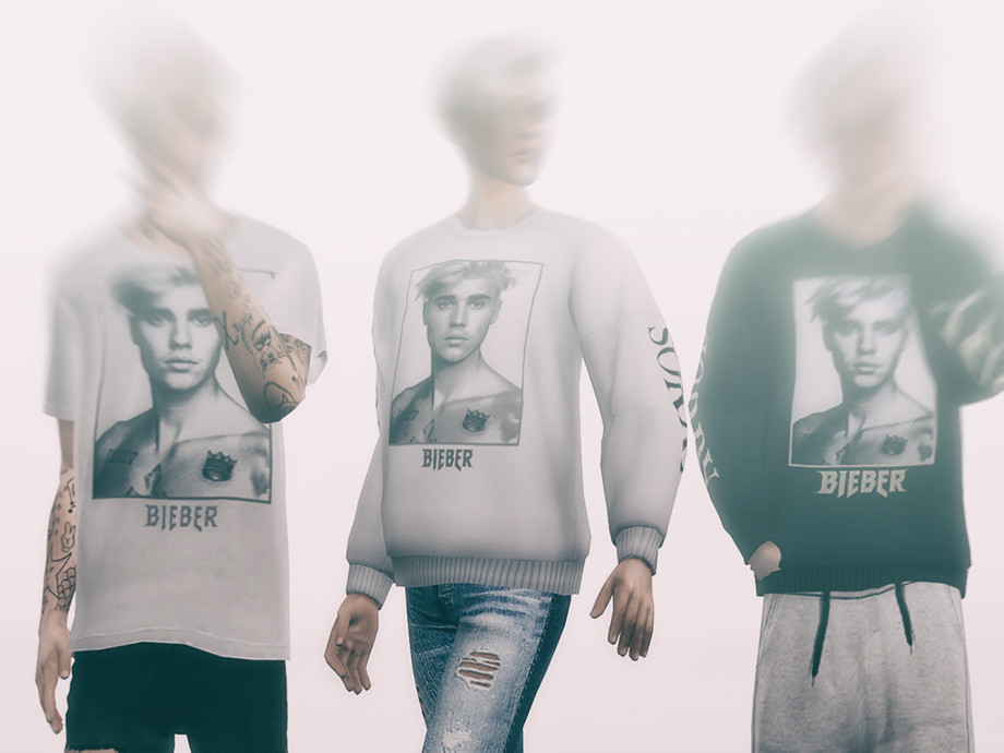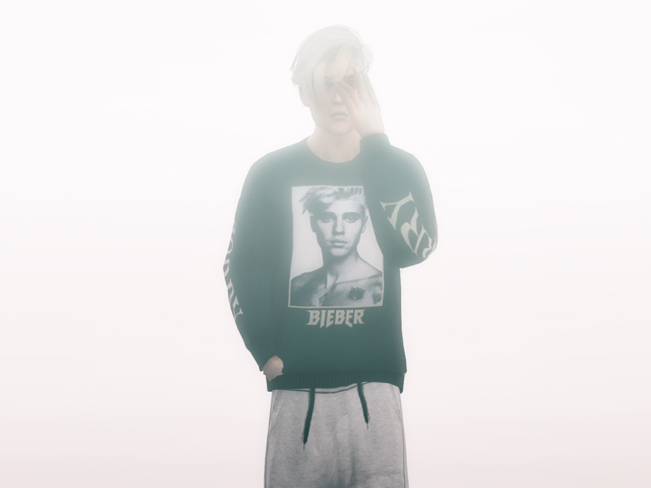 A collection of shirts from Justin Bieber's Purpose Tour fashion line. Includes a Black L/S, White L/S, and White S/S with individual designs.
