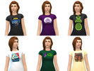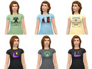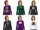 A set of long and short-sleeved shirts for male and female Sims featuring designs from various LucasArts games, including Day of the Tentacle, Maniac Mansion, Sam and Max Hit the Road, Monkey Island, and Indiana Jones and the Fate of Atlantis.